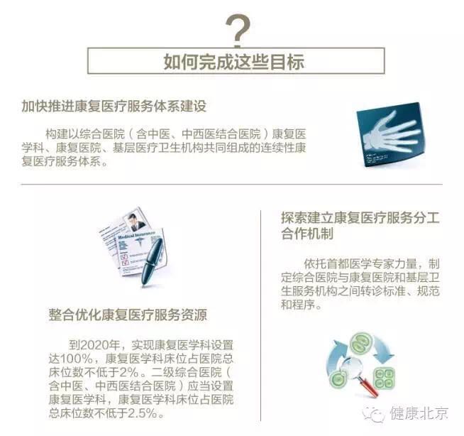 近日,北京市卫生计生委、市发改委等9部门联合印发《关于加强北京市康复医疗服务体系建设的指导意见》(下面简称《指导意见》),明确北京部分公立医院将转型为康复医院,一些医院的部分治疗床位还要转换为康复床位。