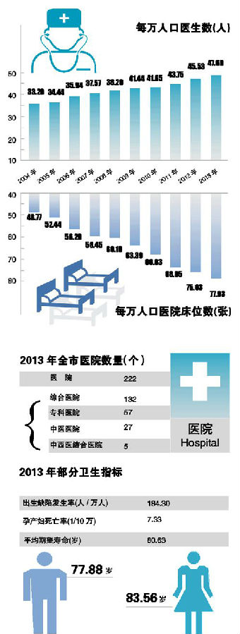 这些医疗资源如何改善广州人的健康状况?不妨看一下这一组数据。1990年,广州市市民的平均期望寿命为74.16岁,2013年,该数据变成了80.63岁。另一个比较明显的数据是孕产妇死亡率,1990年,孕产妇的死亡率有36.60/10万人,2013年,这个数据大幅下降到7.33/10万人。而在5岁以下小童的死亡率上,1990年为23.74%,2013年,这个数据下降到了4.49%。平均预期寿命得到延长、脆弱人群的死亡率得到控制,这些都是医疗资源得到良好运用的证明。所以虽然去医院排队有点累,但活在广州,在医疗方面还是挺有安全感的。